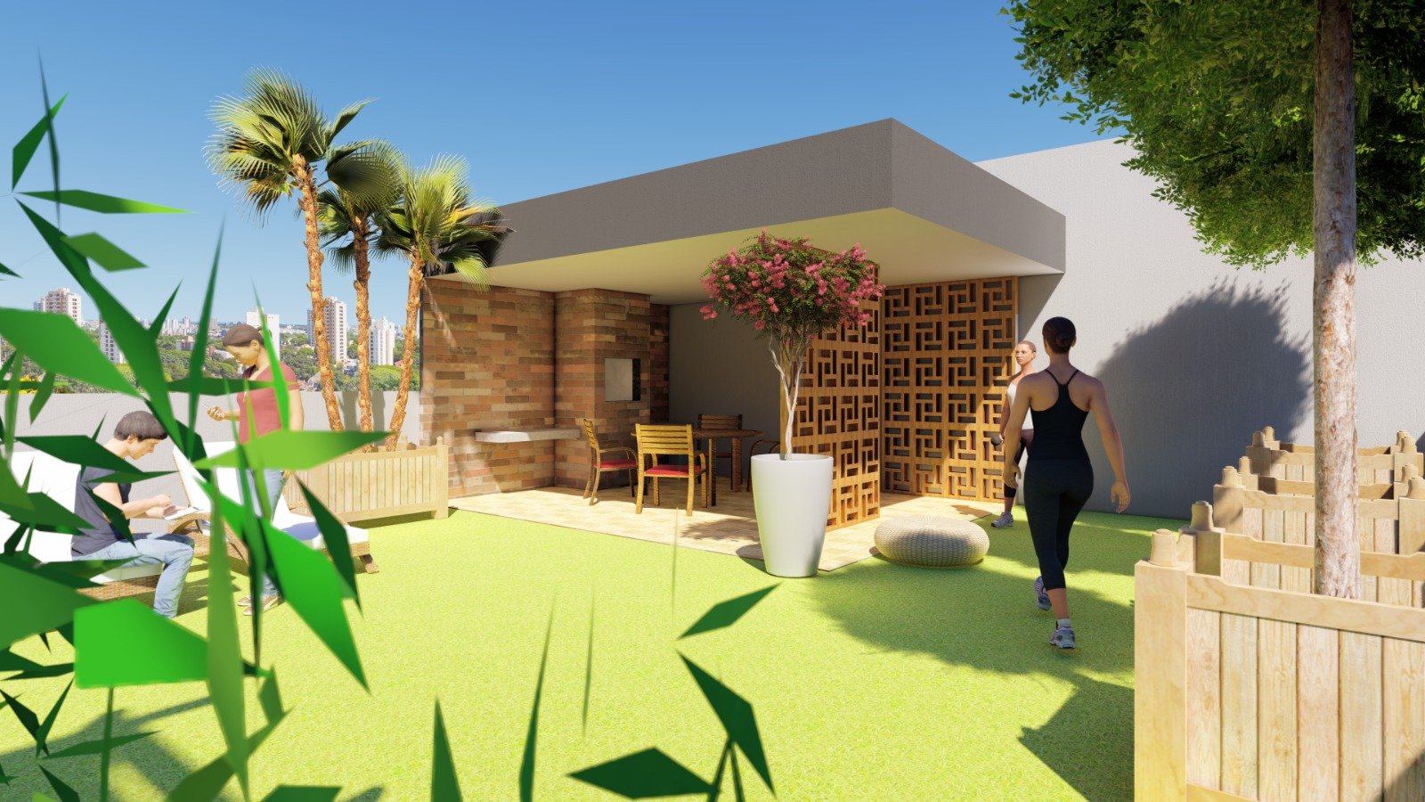 Sacada com churrasqueira: ideal para momentos de lazer;