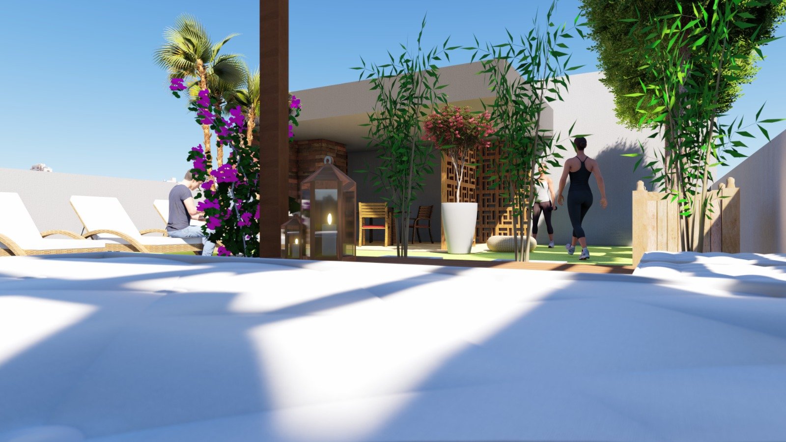 Elevador / Espaço Zen / Rooftop com São de Festa / Espaço Gourmet.