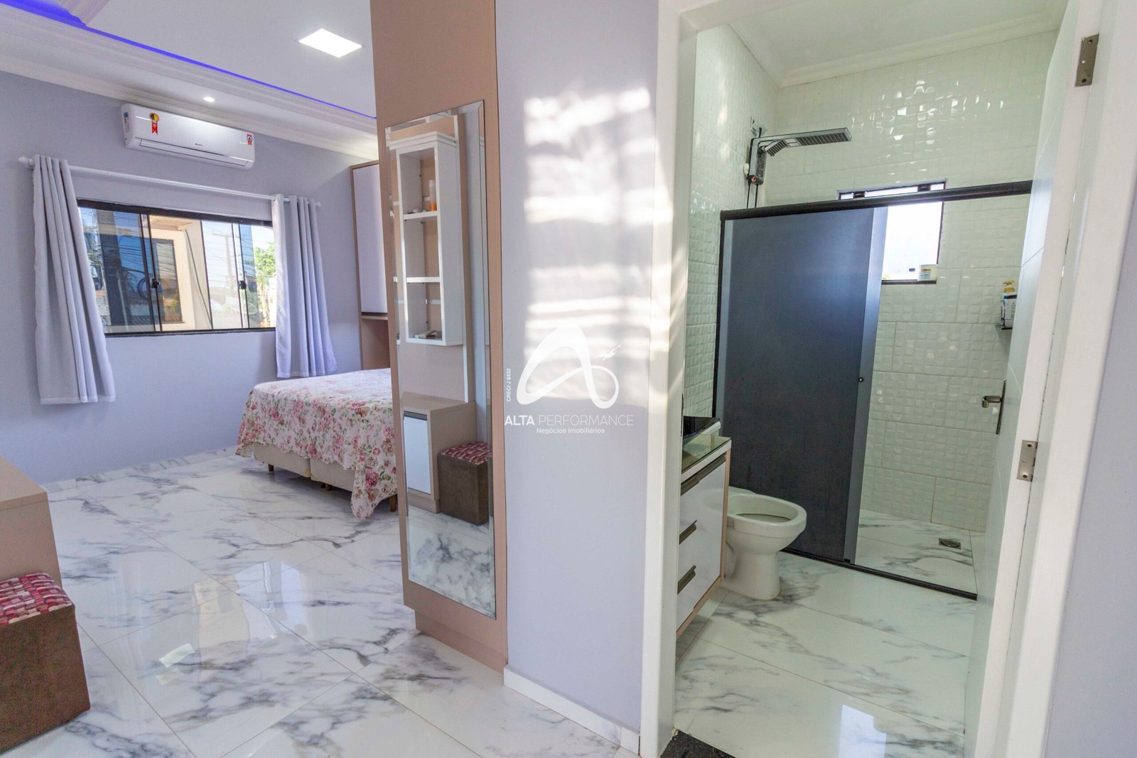 01 Suíte ampla, com ar-condicionado e móveis planejados;