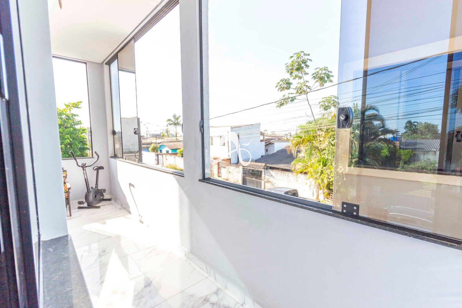 Varanda ampla fechada com vidro;